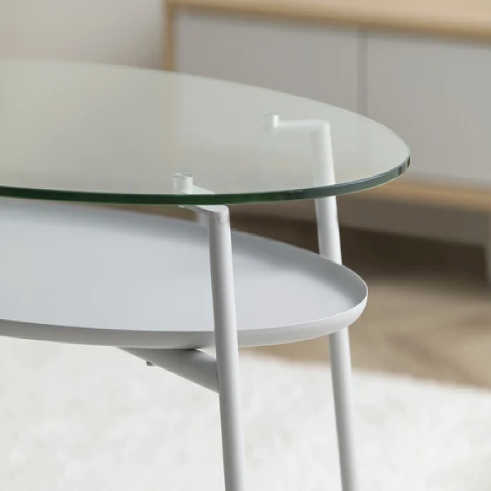 ●ガラス天板でお部屋に開放感をもたらし、お部屋を広く魅せるリビングテーブル・サイドテーブルです。棚板と脚部はグレーでアクセントをプラスしています。天板は厚さ約8mmの強化ガラスと飛散防止フィルムで、割れた際にもガラスが飛び散りにくい安心設計です。ガラス天板なので、棚板に小物やアクセサリーを置いて楽しむこともできます。お客様組み立てとなります。
